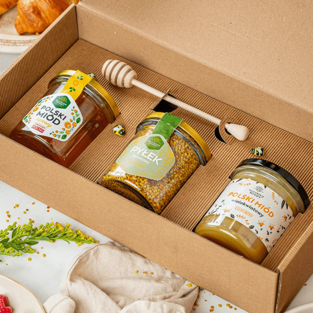 Zestaw prezentowy 2 Miody 400g i Pyłek Pszczeli 200 g